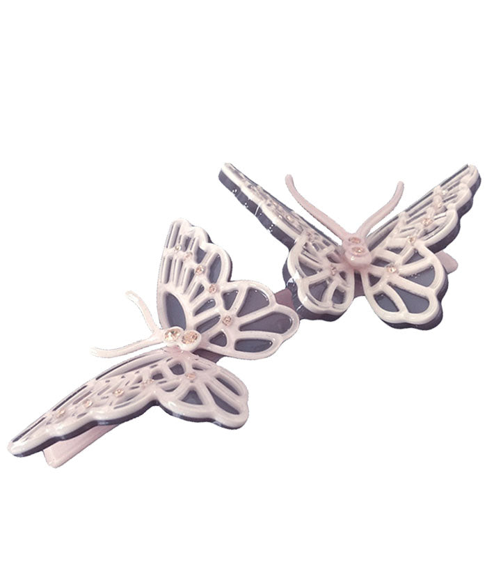 Pink Duo Butterly Barrette with Rose Hued Ziron Gemstones