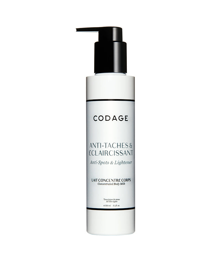 The concentrated ANTI-SPOTS & LIGHTENER body milk is an emulsion rich in antioxidants and highly regenerative agents that acts directly on skin's natural pigmentation mechanism by reducing the synthesis of melanin. Dark spots are faded; the skin tone is even.