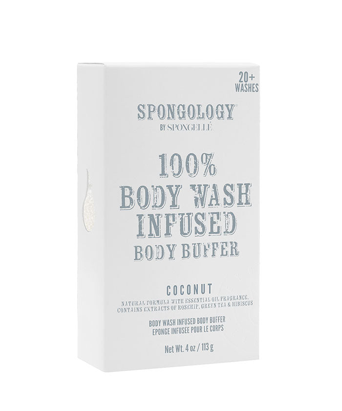 Spongology’s eco-friendly Body Wash Infused Buffer® is formulated with skin softening natural ingredients and extracts of rosehip, green tea, and hibiscus. This All-in-One Beauty Treatment will cleanse, exfoliate, massage and tone. Made with essential oil fragrance blends.