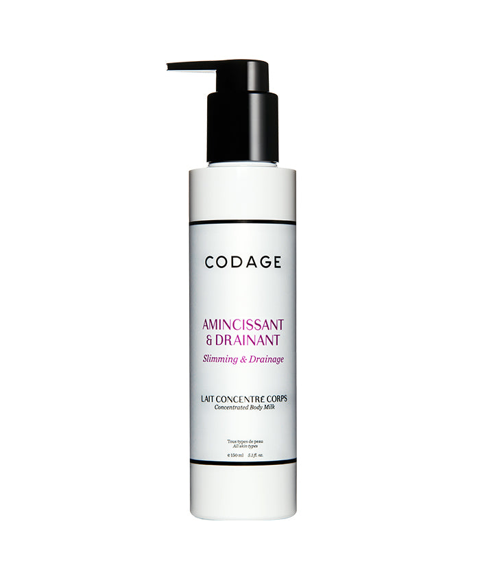 The Concentrated Body Milk SLIMMING & DRAINAGE is a gel-cream which burns and prevents the accumulation of subcutaneous fat. Its unique formula, highly concentrated in encapsulated caffeine, acts at the heart of the adipose tissue to effectively combat cellulite and the “orange-peel” effect. Also enriched with macadamia oil and pink pepper extract, this concentrated body milk stimulates lymph drainage and microcirculation to fight water retention and the sensation of “heavy legs”. \