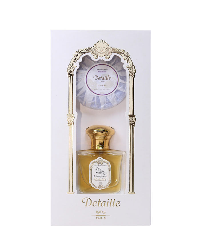 This set includes 1 Detaille Aeroplane Eau de Toilette 30ml and 1 Violette Soap