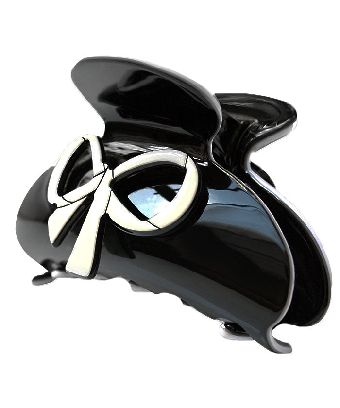 Small Black Hair Claw with 3D Ivory Bow Embelishment