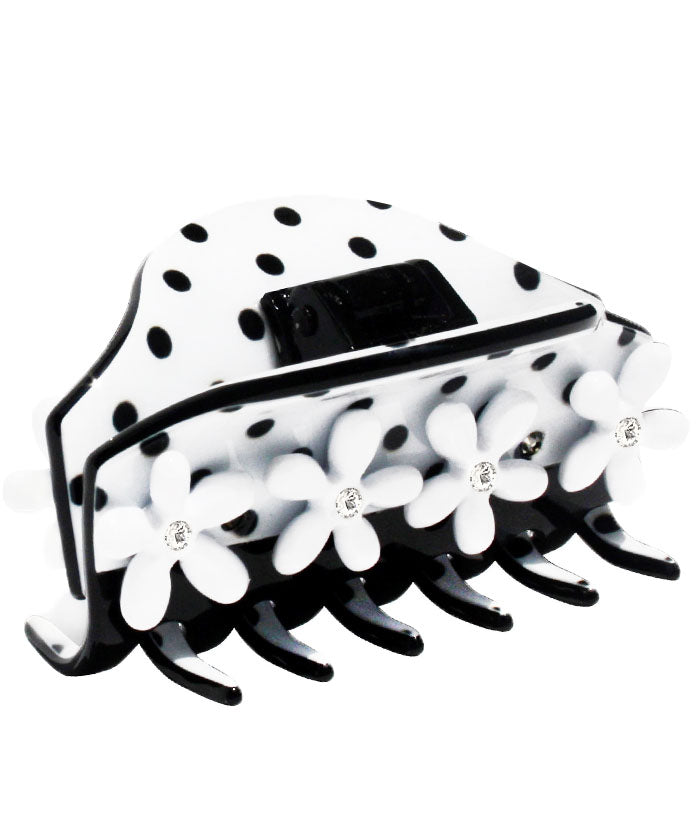 Medium Black and White Hair Claw with 3D Floral Embelishments