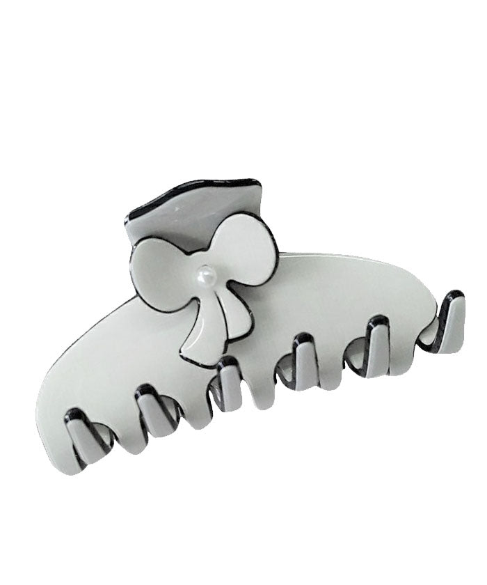 Medium White Hair Claw with Balck Interior and 3D Black and White Floral Embelishment with Crystal Stones