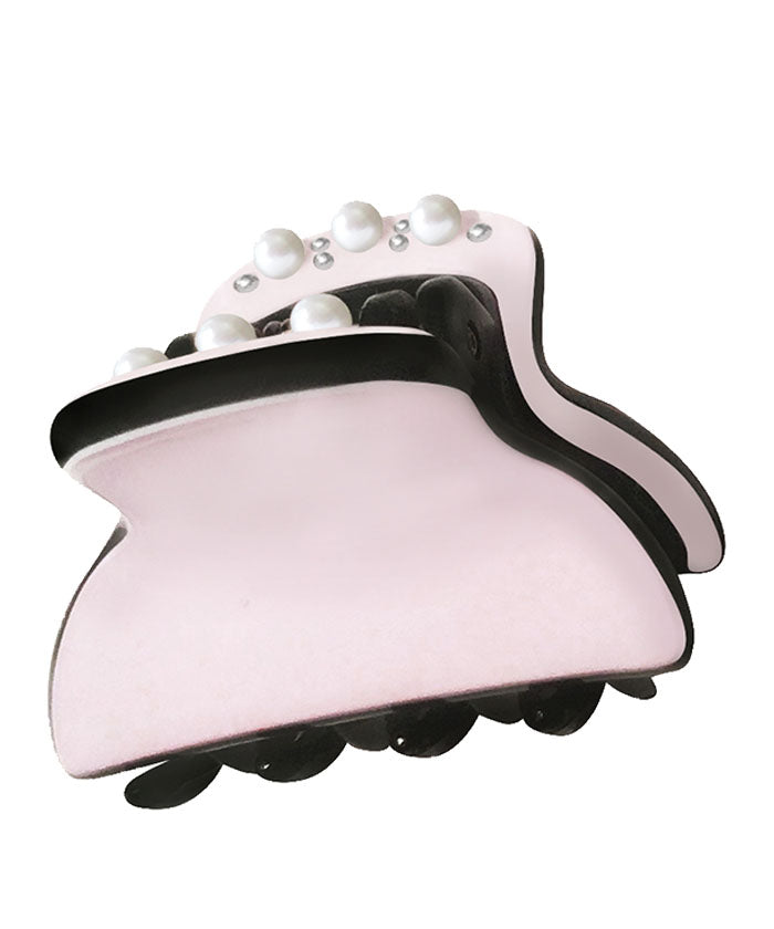 Mini Pale Pink Hair Claw with Black Interior and Pearl Embelishments