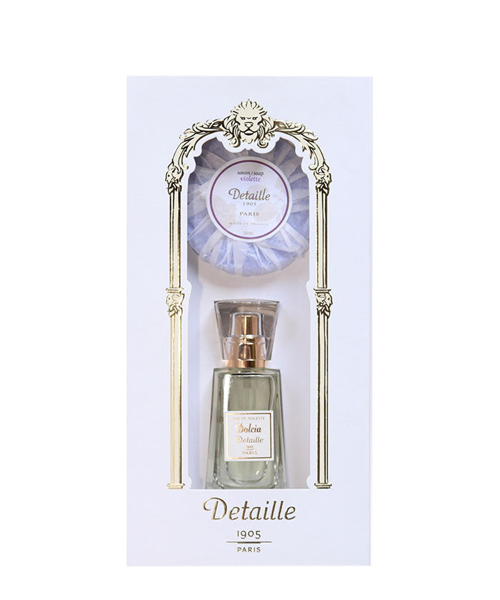 This set includes 1 Detaille Dolcia Eau de Toilette 30ml and 1 Violette Soap