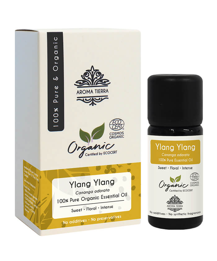 Aroma Tierra Organic Ylang Ylang Essential oil is extracted from high quality organic Ylang Ylang flowers from Madagascar by steam distillation method. It is 100% pure, natural and ‘Certified Organic’ by ECOCERT, a reputed certification body from France. It is free from chemicals, solvents, additives, synthetic fragrances and preservatives. The oil is very concentrated, potent and strong in therapeutic properties. Aroma Tierra takes great care to pack the oil in specially designed violet glass bottle to prevent damage from sunlight and preserve its potency.