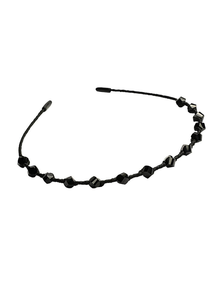 Chic Black Headband with Appliqué Beading