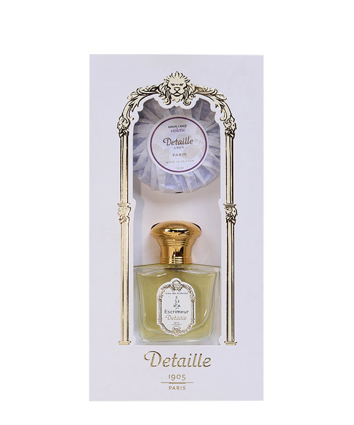 This set includes 1 Detaille Escrimeur Eau de Toilette 30ml and 1 Violette Soap