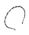 Chic Headband Wrapped in Light Grey Fabric completed with Segregated Pearls and Crystals enveloped in a Gold-Plated Casing