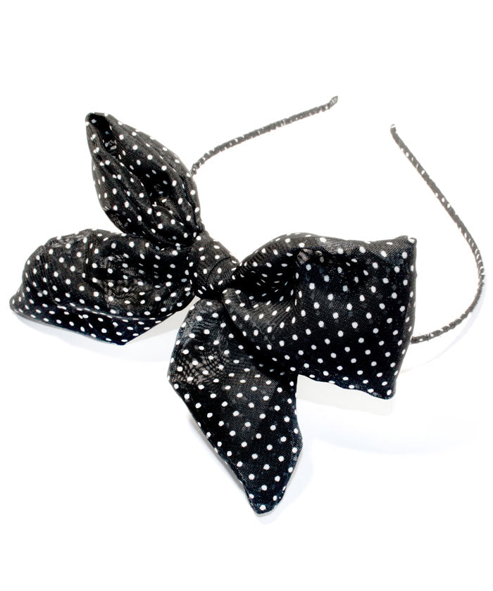 Couture Headband with Large Fabric Black and White Polkadot Side Bow and Band