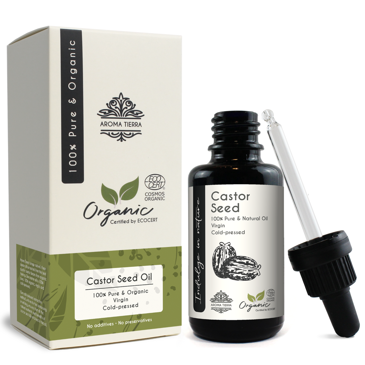 Aroma Tierra brings nature’s finest Castor Seed Oil extracted from the best quality organic castor beans from India. Aroma Tierra Castor Seed oil is 100% Pure, Certified Organic, Virgin, Hexane-free and Cold-pressed, and is far superior to the commonly available solvent-extracted castor seed oil. Our cold-pressed extraction method, with no further processing or refining, ensures that all the natural nutrients of castor are fully retained in the oil. Our unrefined castor seed oil is a clear liquid with high viscosity, a property of pure castor seed oil.