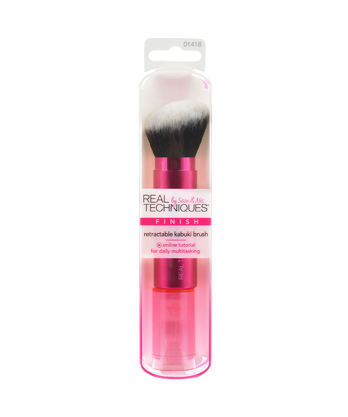 Our retractable kabuki brush is essential on-the-go to evenly apply powders, bronzers or blush:
