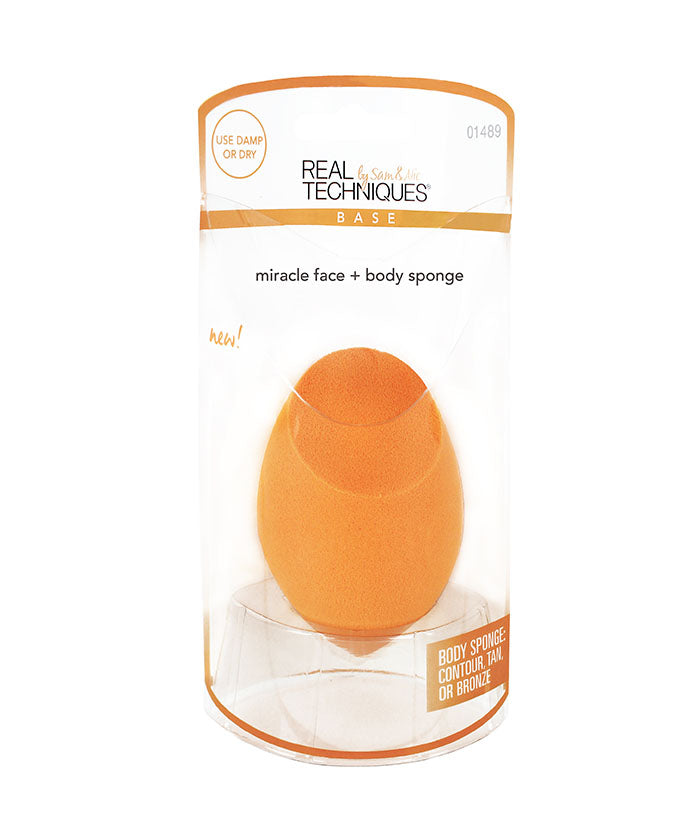 Achieve perfect skin all over with the miracle body complexion sponge; this Real Techniques sponge can be used for streak-free application of highlighters, bronzers, and body makeup; the larger size is designed to cover the curves of your body flawlessly.