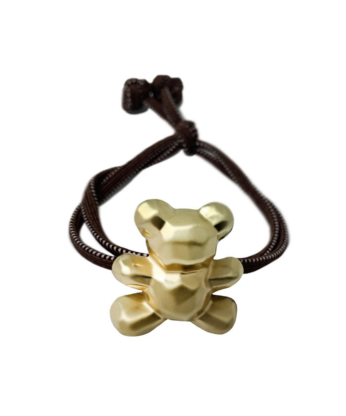 Double Loop Black Hair Tie with Gold Teddy Bear