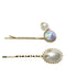 Set of 3 Gold Plated Hair Pins with an Opaque Opal Gemstone, finished off with Semi-Circled Pearls and a Leoporad Print Embelishment