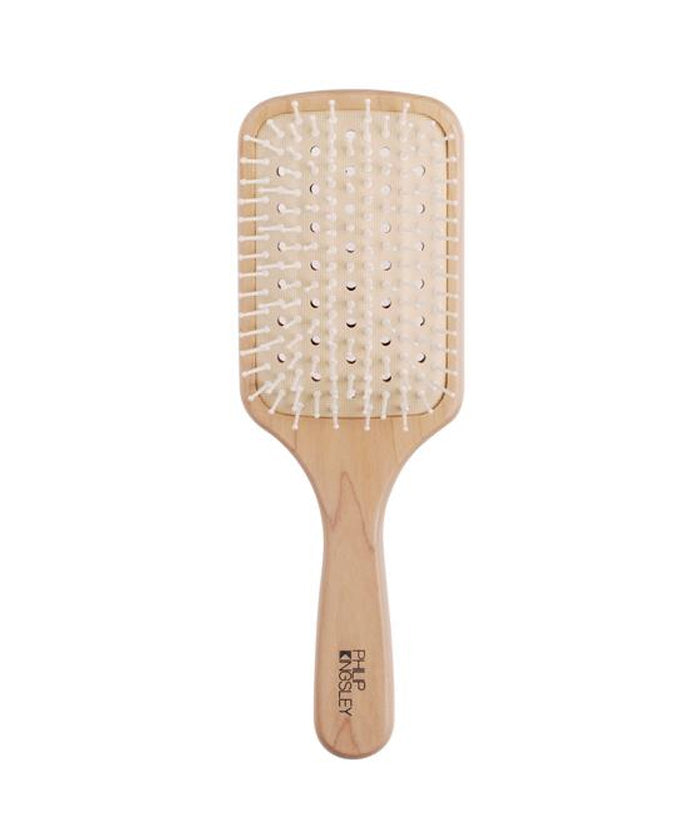 "For long hair. The Paddle Brush is vented to allow heat to disperse quickly and for hair to dry quicker, ensuring as little heat damage as possible. The brush has anti-static properties to avoid fly away ends and is cushioned to ensure only gentle pressure to the scalp. Widely spaced and round ended pins prevent any irritation or scratching of the scalp."