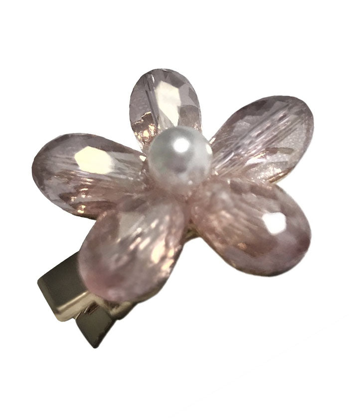 Gold Plated 3D Floral Hair Clip with Transparent Quartz Gemstones and Small Pearl Embelishment