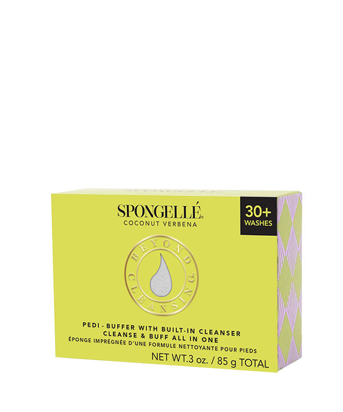"Extracts of pampering peppermint and sea kelp cleanse, buff, and polish in a rich lathery massage. Spongellé’s Pedi Buffer is the perfect velvety wash for tired, achy feet. Easy-to-use travel size allows for pampering anywhere you go. 30+ washes. Place sponge under warm water, squeeze to activate. Use the soft side to cleanse and the textured side to gently exfoliate by using a circular motion—while stimulating circulation. Rinse and squeeze out excess water after each use. Sponge can be re-purposed after complete use."